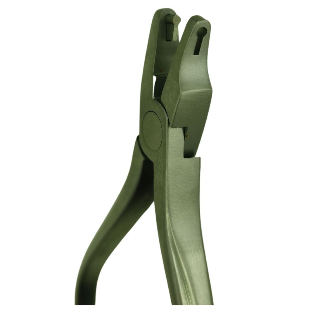 Creación de férulas: Los alicates alineadores para férulas se emplean para generar ranuras o incisiones en las férulas ortodóncicas para el alojamiento de alambres ortodóncicos. Estas férulas pueden ubicarse en cualquier lugar de la férula según sea necesario.