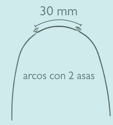 Los arcos de alambre en bucle ofrecen una excelente versatilidad para una variedad de aplicaciones, incluyendo la intrusión anterior, el cierre de espacios, la retracción anterior, etc. En una variedad de tamaños para adaptarse a la mayoría de los pacientes, arcos superiores e inferiores, localizando las asas entre el lateral y el canino. Para seleccionar el tamaño adecuado, medir a lo largo del borde incisal de distal lateral a distal lateral opuesto con una regla mm.