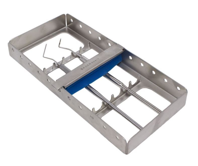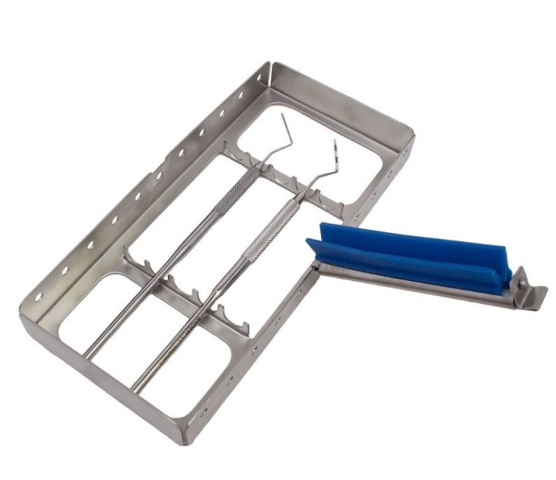 - Contiene barra de sujeción de silicona para inmovilizar los instrumentos.