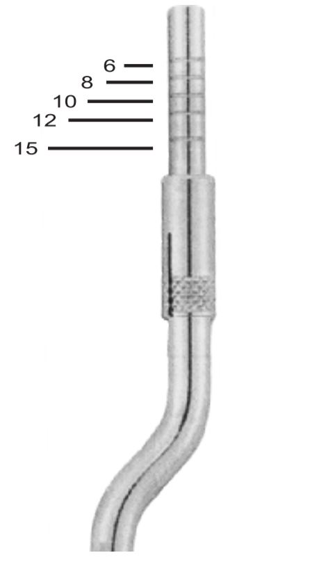- Las marcas de los 6, 8, 10, 12 y 15 mm para medición de profundidad.
